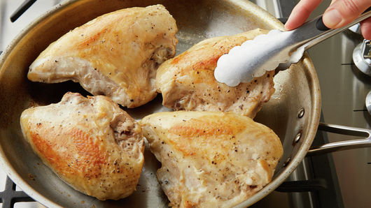 If desired, to sear breasts after sous vide cooking: Rub chicken with 1 tablespoon vegetable oil. Heat 12-inch skillet over medium-high heat. Once hot, add chicken; cook 1 minute 30 seconds to 2 minutes on each side, until just browned.
